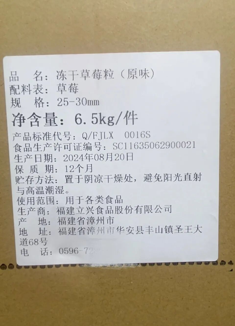 “我们和下游公司签约,约定加工的冻干草莓产品需求量大,因此与立兴食品公司又签订了一份11吨的采购合同。”林女士说,10月2日至10月19日,公司先后收到了9吨多的冻干草莓,“我们对部分冻干草莓进行了深加工,然后送乳品公司。”