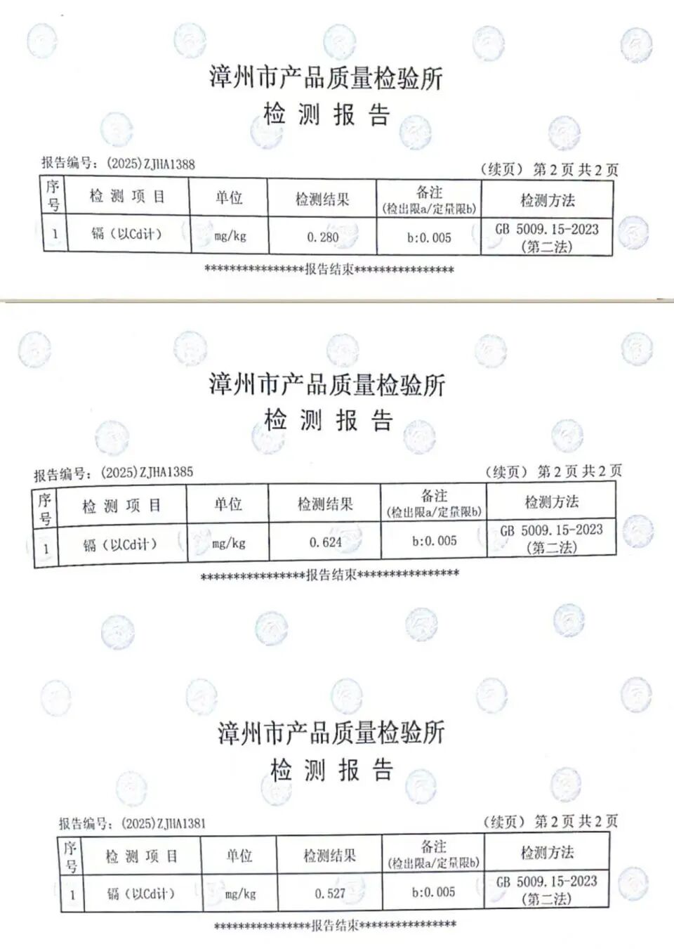 林女士不认可,并于8月28日向漳州市产品质量检测所送检12批冻干草莓。9月初,检测结果为,镉含量最低0.28mg/kg,最高0.624mg/kg。